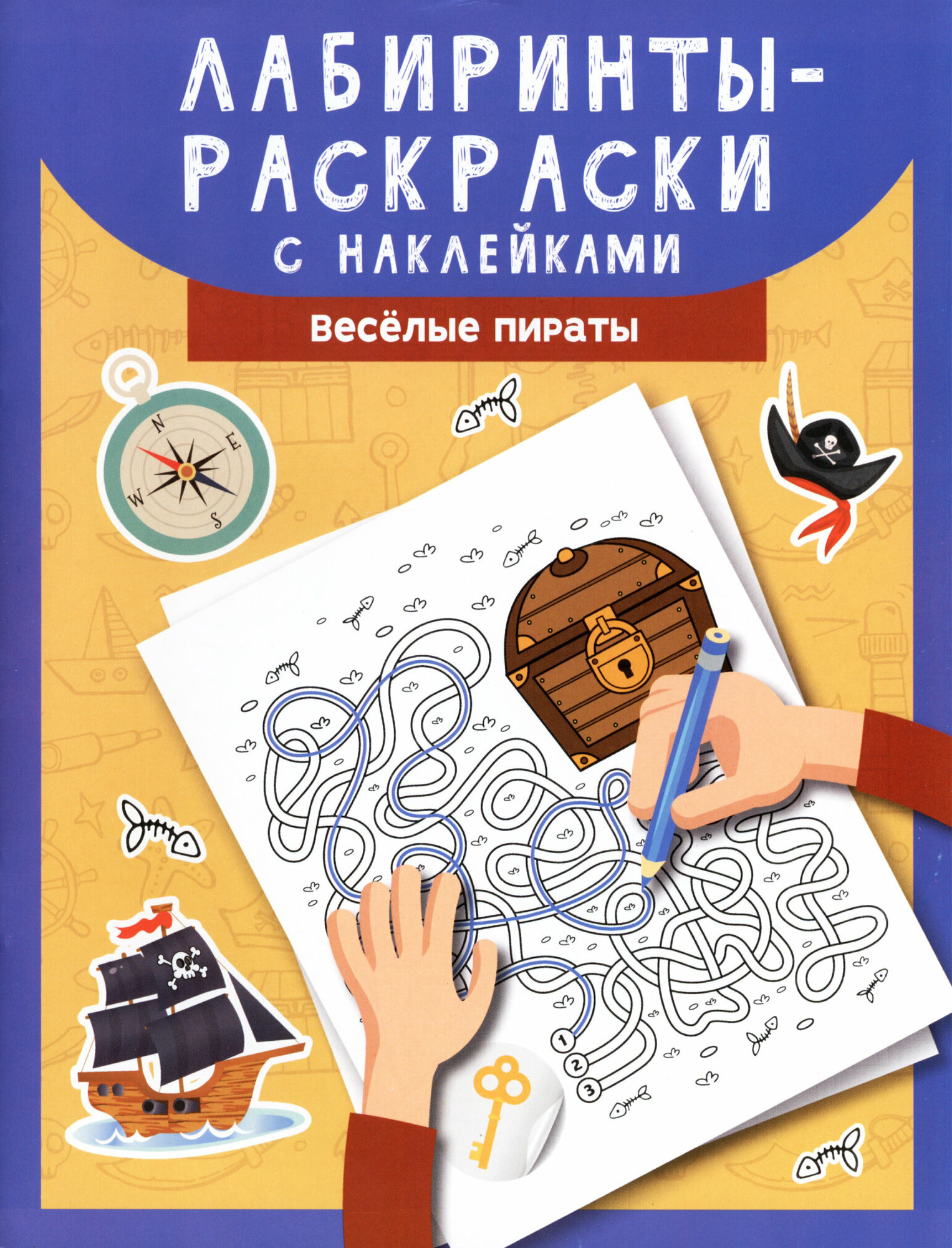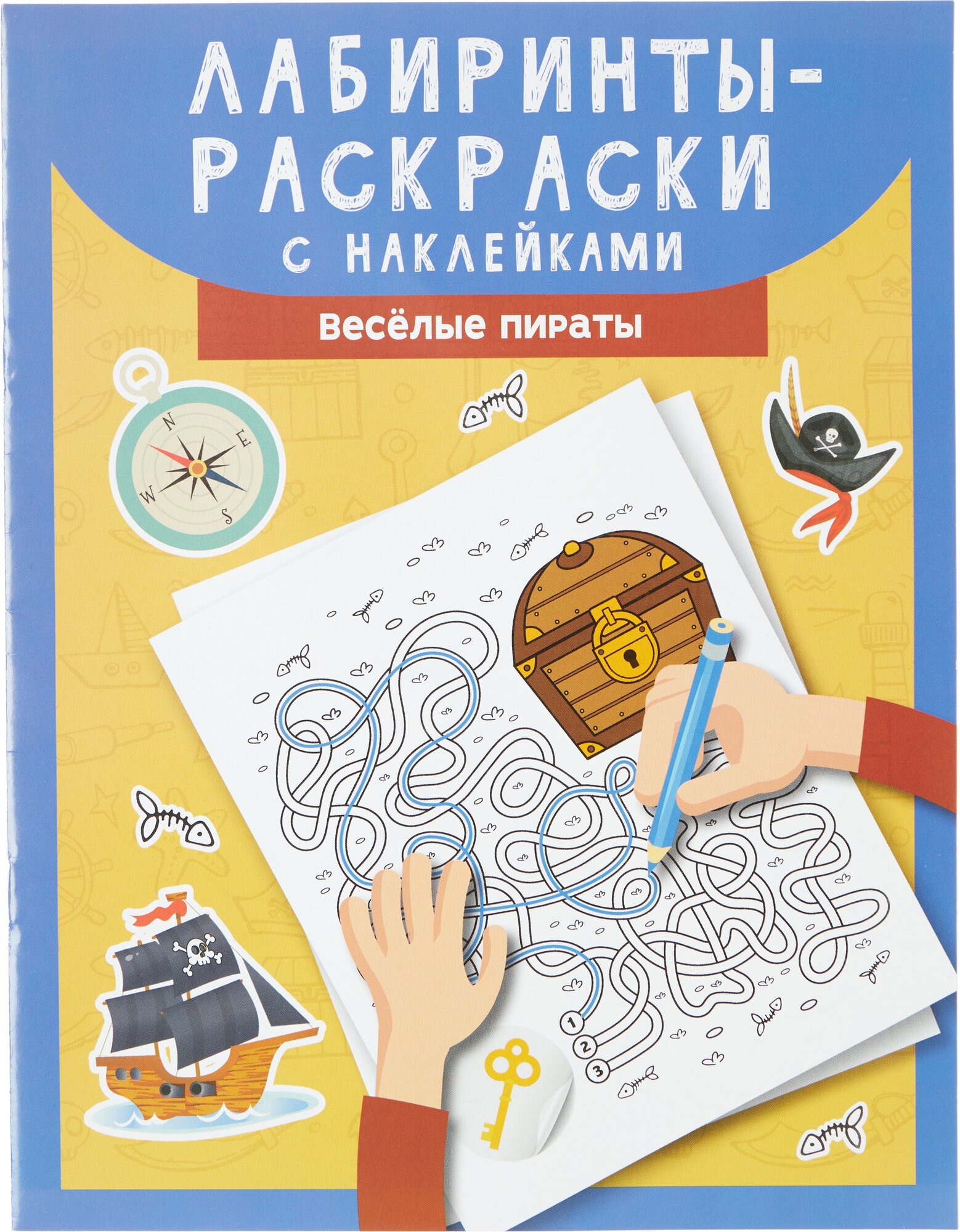 Отважные пираты бороздят водные просторы в поисках добычи. Вместе с командой весёлых морских разбойников ты отправляешься на поиски сокровищ. Проходи лабиринты и открывай сундуки с золотом и драгоценностями, сражайся с опасными акулами, вызволяй своих товарищей из беды. В книге тебя ждут рисунки для раскрашивания, наклейки и запутанные дорожки различного уровня сложности.