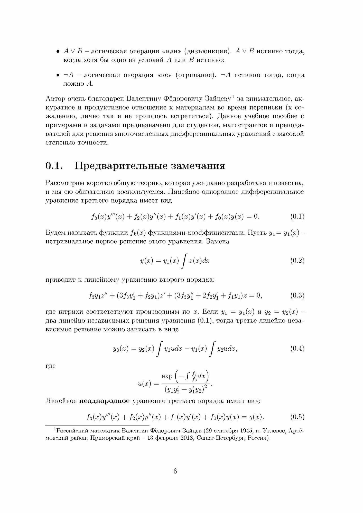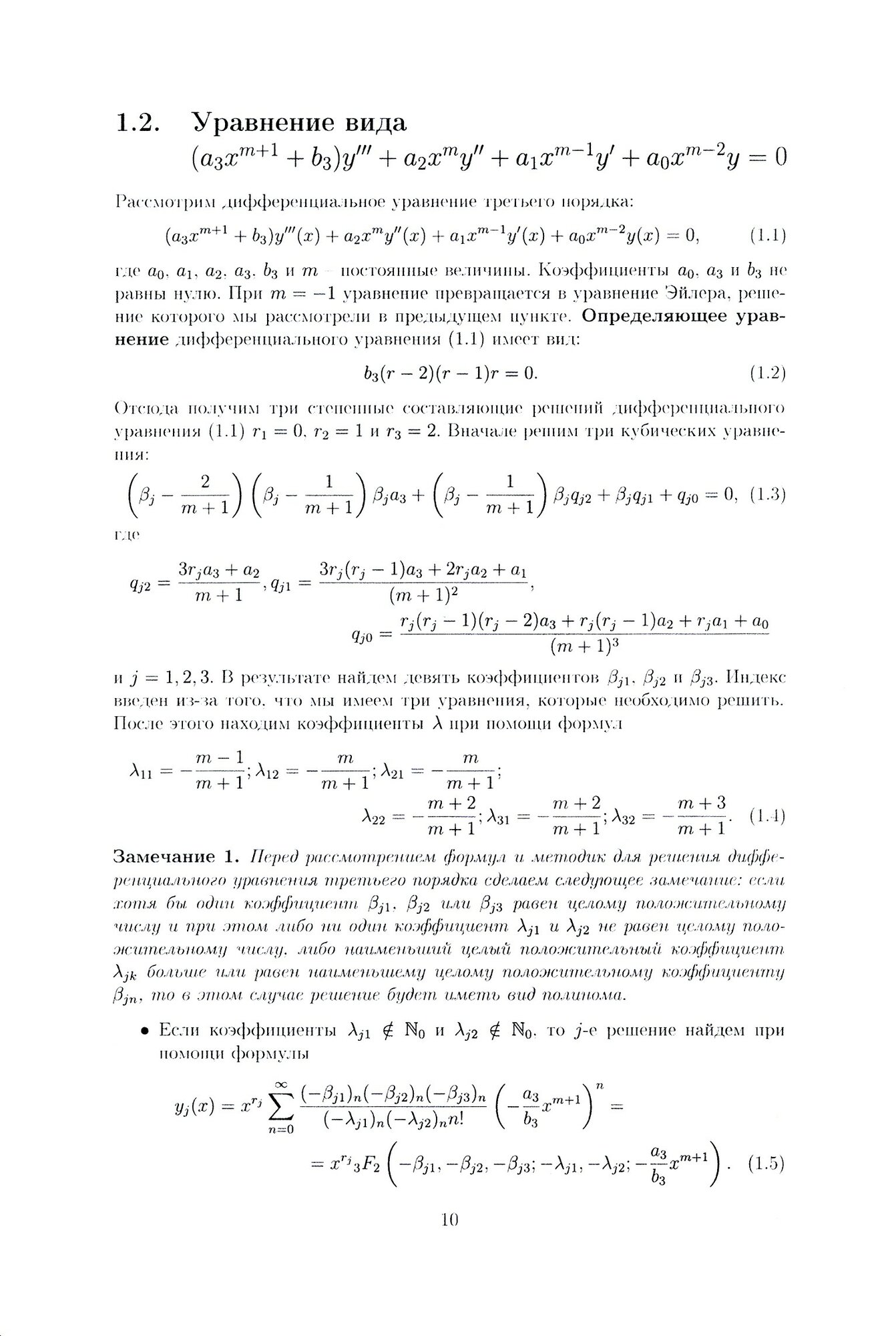 В большинстве современных пособий рассмотрение задач заканчивается на дифференциальных уравнениях второго порядка. Чтобы расширить диапазон подробно рассматриваемых и решаемых дифференциальных уравнений до уравнений третьего порядка, была и создана данная книга. В данной книге приведены методики решения дифференциальных уравнений третьего порядка при помощи специальных и гипергеометрических функций, рассмотрены рекуррентные алгоритмы для аналитического решения в виде степенного ряда и подобраны многочисленные варианты решений в виде «точной формулы». Количество вариантов решаемых уравнений в виде «точной формулы» превосходит все известные автору справочники. Пособие содержит большое количество задач для практического закрепления материала. Книга будет полезна при изучении и решении дифференциальных уравнений третьего порядка с переменными коэффициентами в высших учебных заведениях.