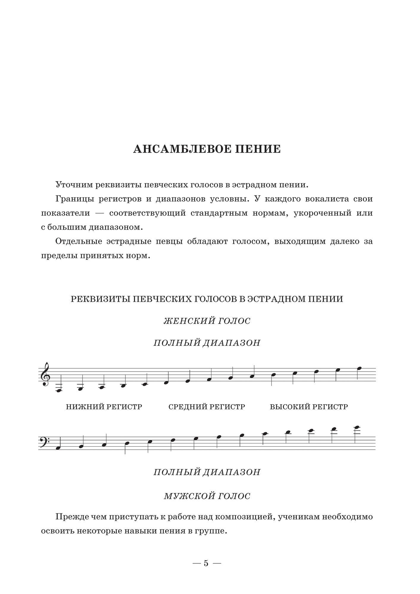 Цель данного учебного пособия — помочь начинающим педагогам класса вокального эстрадного ансамбля. В пособии даны упражнения и методические рекомендации, которые помогут овладеть навыком пения в группах от двух до четырех исполнителей, а также изложены элементарные сведения по технике вокальных аранжировок.