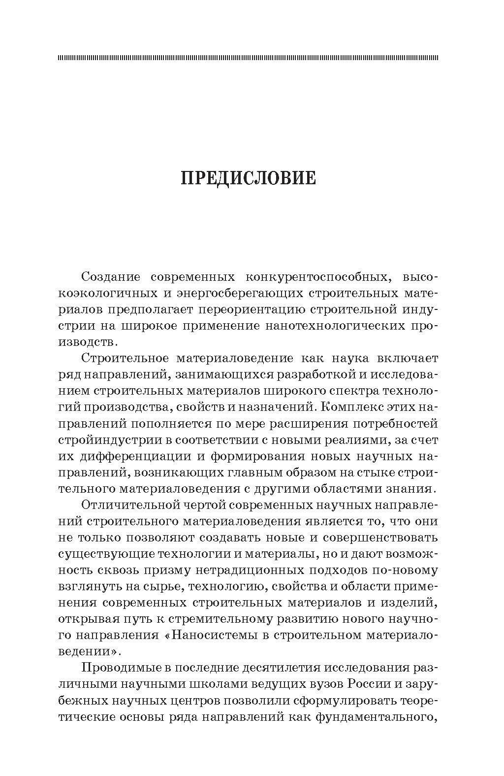 Учебное пособие «Наносистемы в строительном материаловедении» представляет собой первую попытку в практике отечественной высшей школы систематического изложения основных положений и вопросов, связанных с применением нанотехнологических подходов при разработке и производстве строительных материалов. В издании изложены основные понятия о наноразмерном состоянии вещества, начальные представления о наноминералогии сырья для строительной индустрии, основы аналитических методов исследования наносистем в строительном материаловедении. Рассмотрены вопросы применения наносистем при получении вяжущих различных механизмов твердения и композиционных материалов на их основе. Учебное пособие предназначено для студентов и аспирантов строительных специальностей, а также может представлять интерес для инженеров и научных сотрудников.