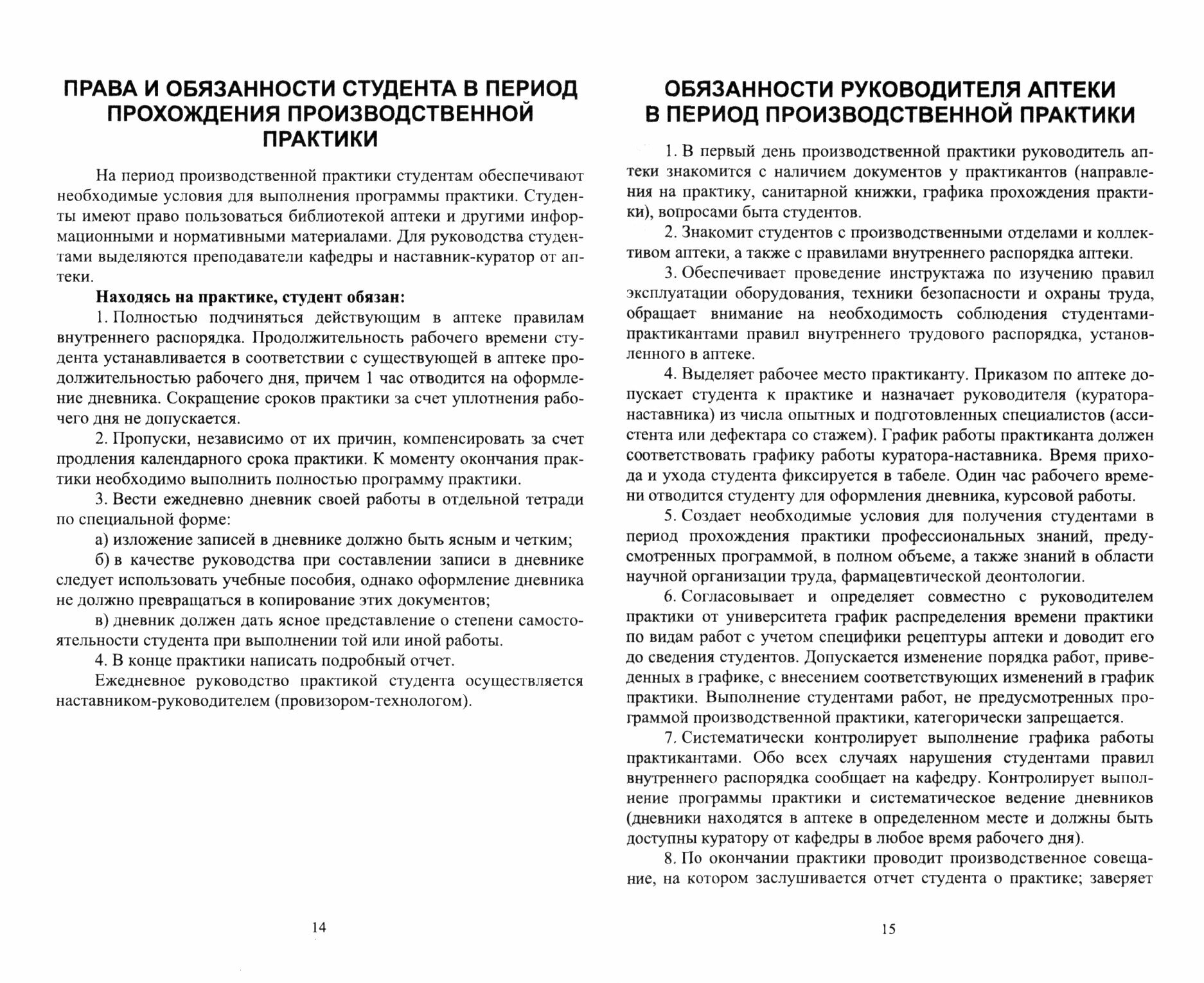 В пособии подробно рассмотрены знания, умения и навыки, которые должен приобрести студент за время прохождения практики, содержание практики, задания по каждому разделу практики, освещены права и обязанности студента, руководителя аптеки, куратора-наставника от аптеки, теоретические вопросы к зачету по производственной практике, приведен весь необходимый справочный материал.