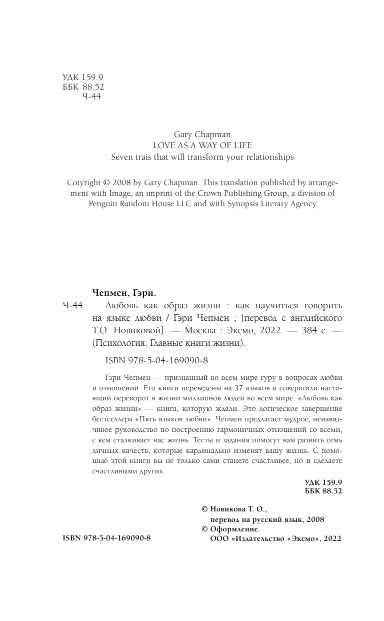 Любовь как образ жизни. Как научиться говорить на языке любви (Чепмен Гэри); ООО "Издательство "Эксмо", 2022