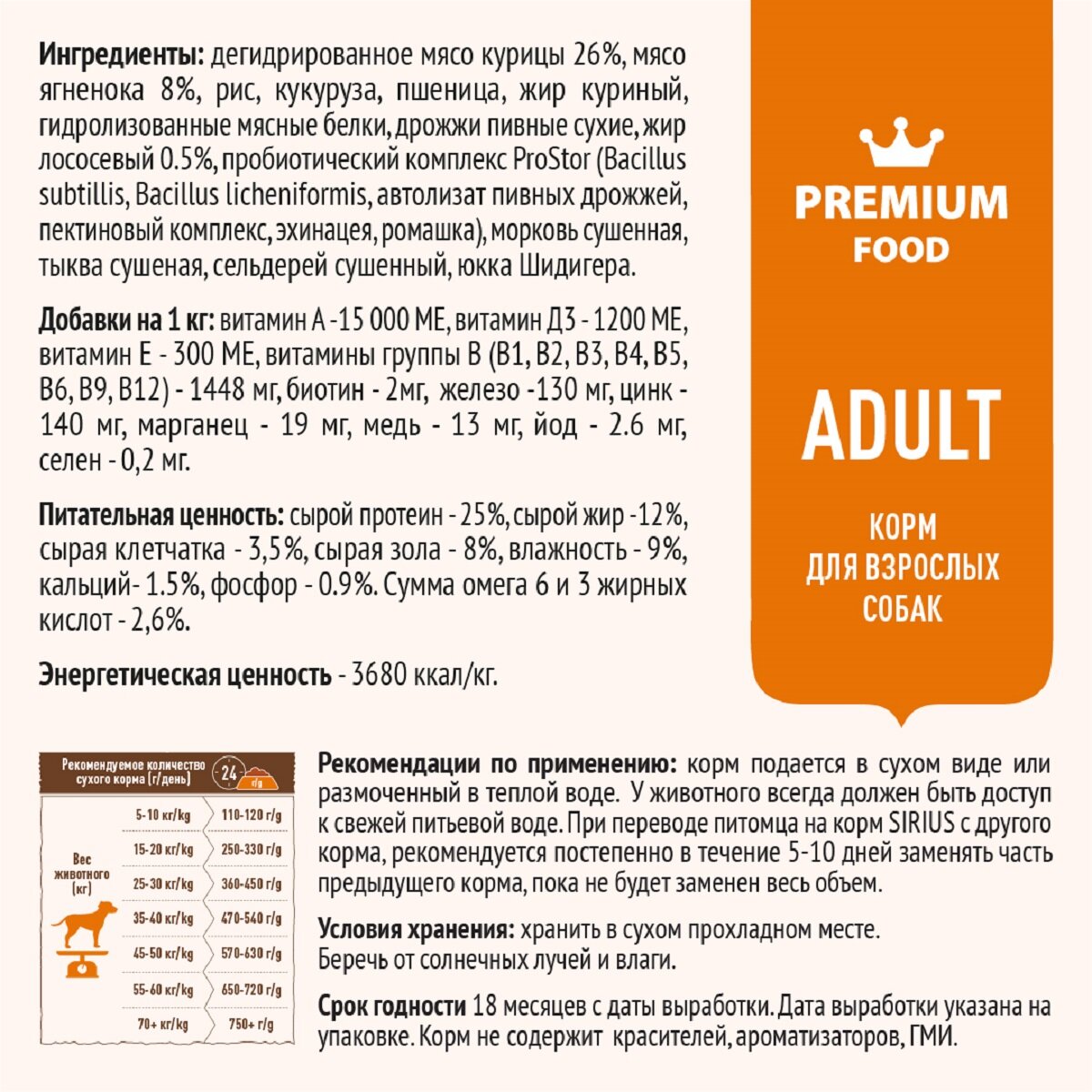 Sirius Ягненок и рис. Сухой корм Сириус с ягненком и рисом предназначен для взрослых собак всех пород. По ингредиентному составу относится к кормам премиум класса. Содержит все витамины и минеральные вещества необходимые для повседневного здорового питания вашего питомца.