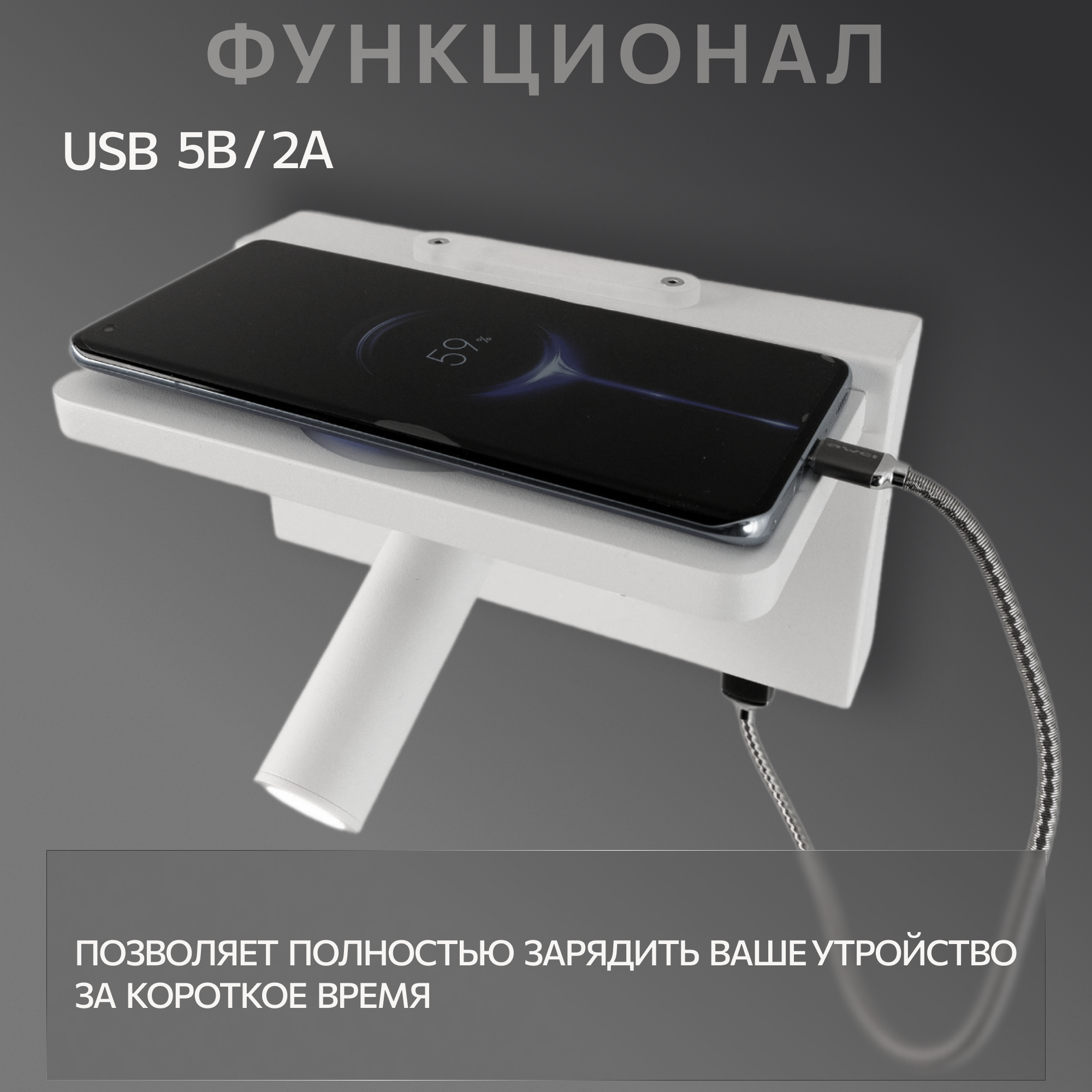 Настенный светильник Декарт CL704370 LED USB QI - продукт известной компании Citilux (Италия). Имеет максимальную мощность 6 Вт, освещает площадь до 1.5 кв. м. Отлично подойдет для таких мест, как спальня. Впишется в интерьеры следующих стилей: современный.