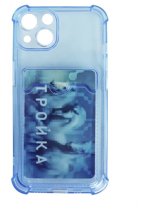 Чехол LuxCase для APPLE iPhone 13 TPU с картхолдером Transparent-Blue 63535 LuxCase-bampcard-iPh13-2022