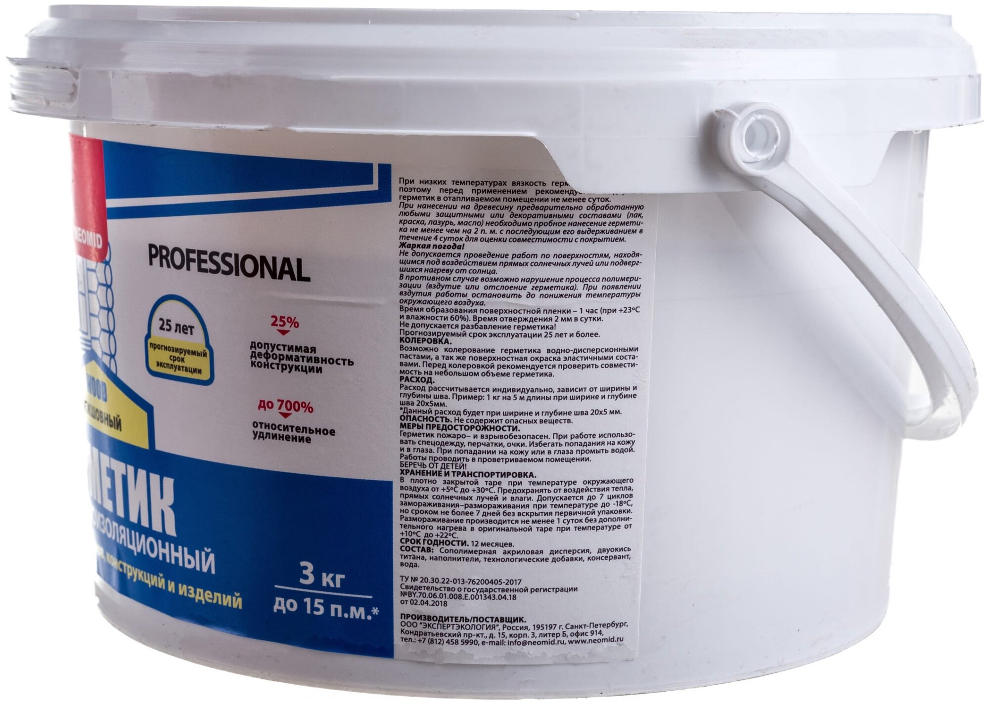 герметик акриловый NEOMID Wood тепловлагоизоляционный 3кг белый арт.4607138459029