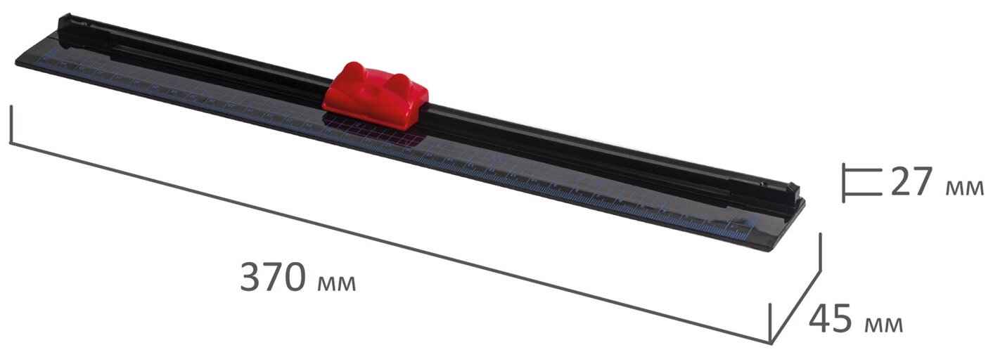 Оснащен безопасным лезвием и удобной мерной шкалой. Длина реза составляет 320 мм. Компактный размер и низкий вес делают процесс переноски резака максимально комфортным. Размер — 27x370x45 мм. Вес — 0.1 кг.