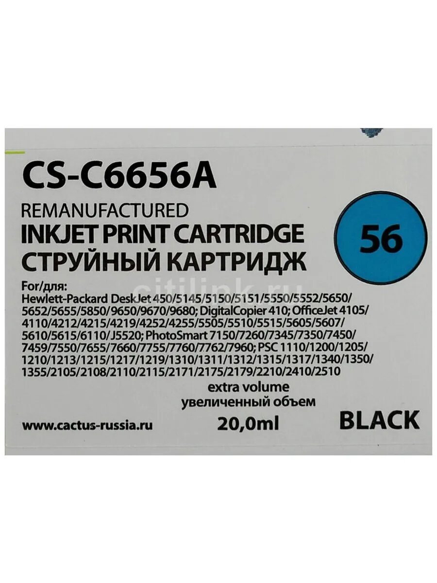 Модель: CS-C6656A для HP 450/5145/5150/5151/5550/5552/5650/5652/5655/585 (черный)