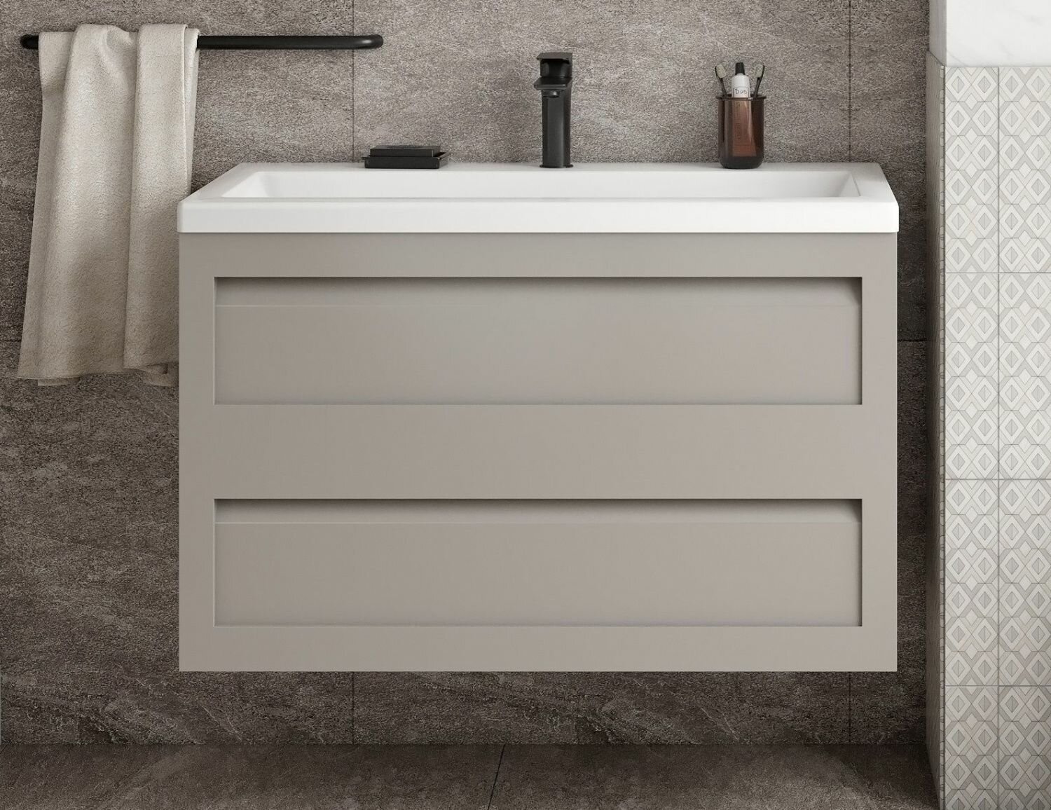 Тумба с раковиной Art&Max Platino 90 см AM-Platino-900-2C-SO-GCM светло-серый матовый Platino AM-Platino-900-2C-SO-GCM
