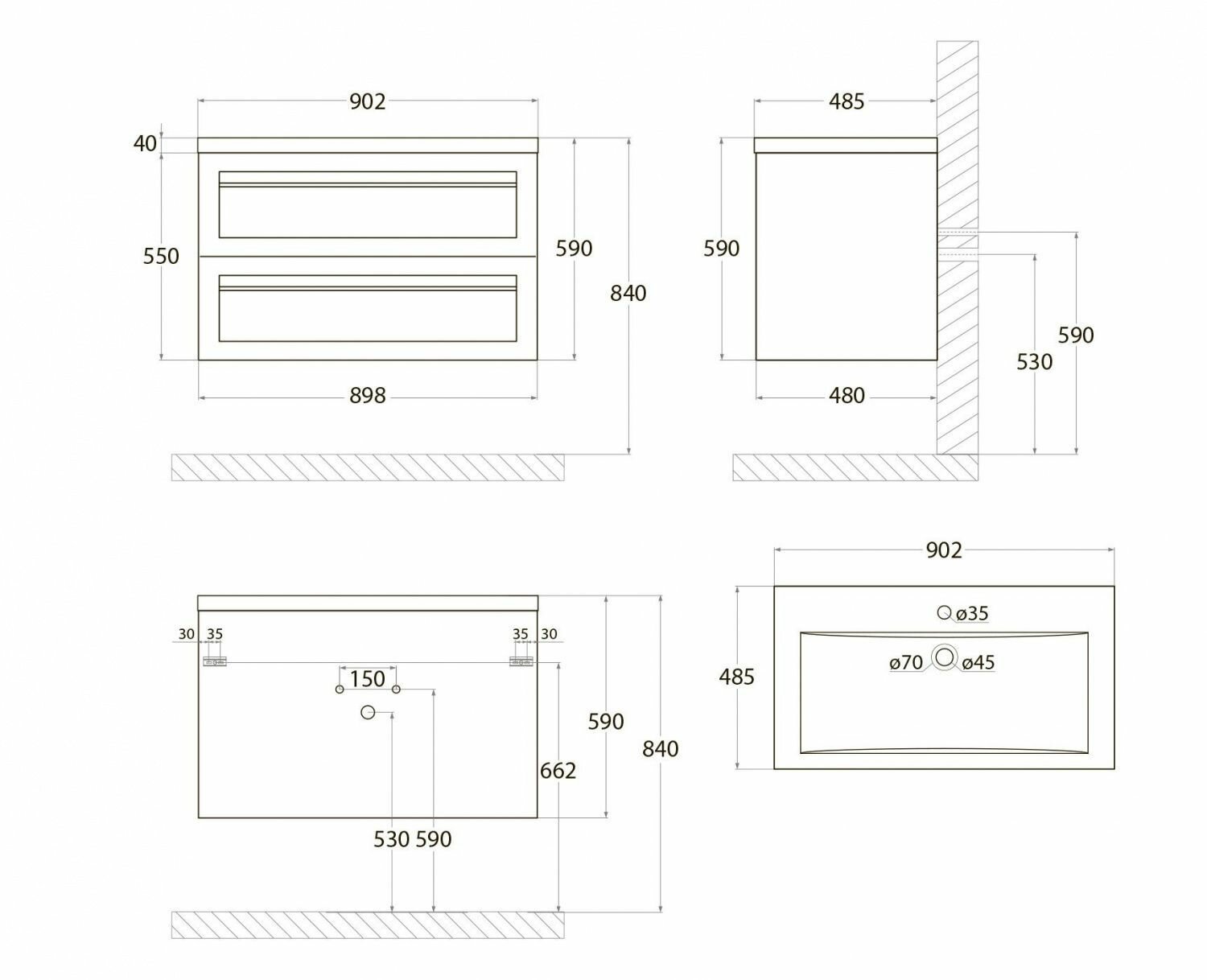 - Размеры (ШхВхГ): 898х550х480 мм.