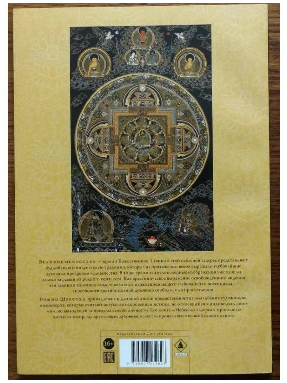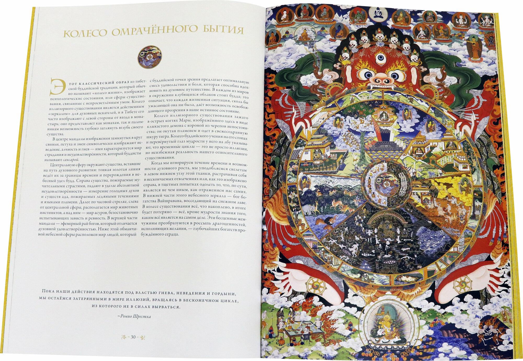 Альбом известного тханкописца Ромио Шрестхи, представляющий читателю множество ярких образцов современного буддийского искусства. Эта книга предназначена для читателя-неспециалиста, поэтому тибетские и санскритские имена, названия и термины транскрибированы обычными русскими буквами, без диакритиков и других специальных символов. Изображения, представленные здесь, были выполнены чернильной и матовой акварелью на ткани с использованием минеральных пигментов, изготовленных из золота, серебра, ляпис-лазури, киновари и других традиционных материалов.
