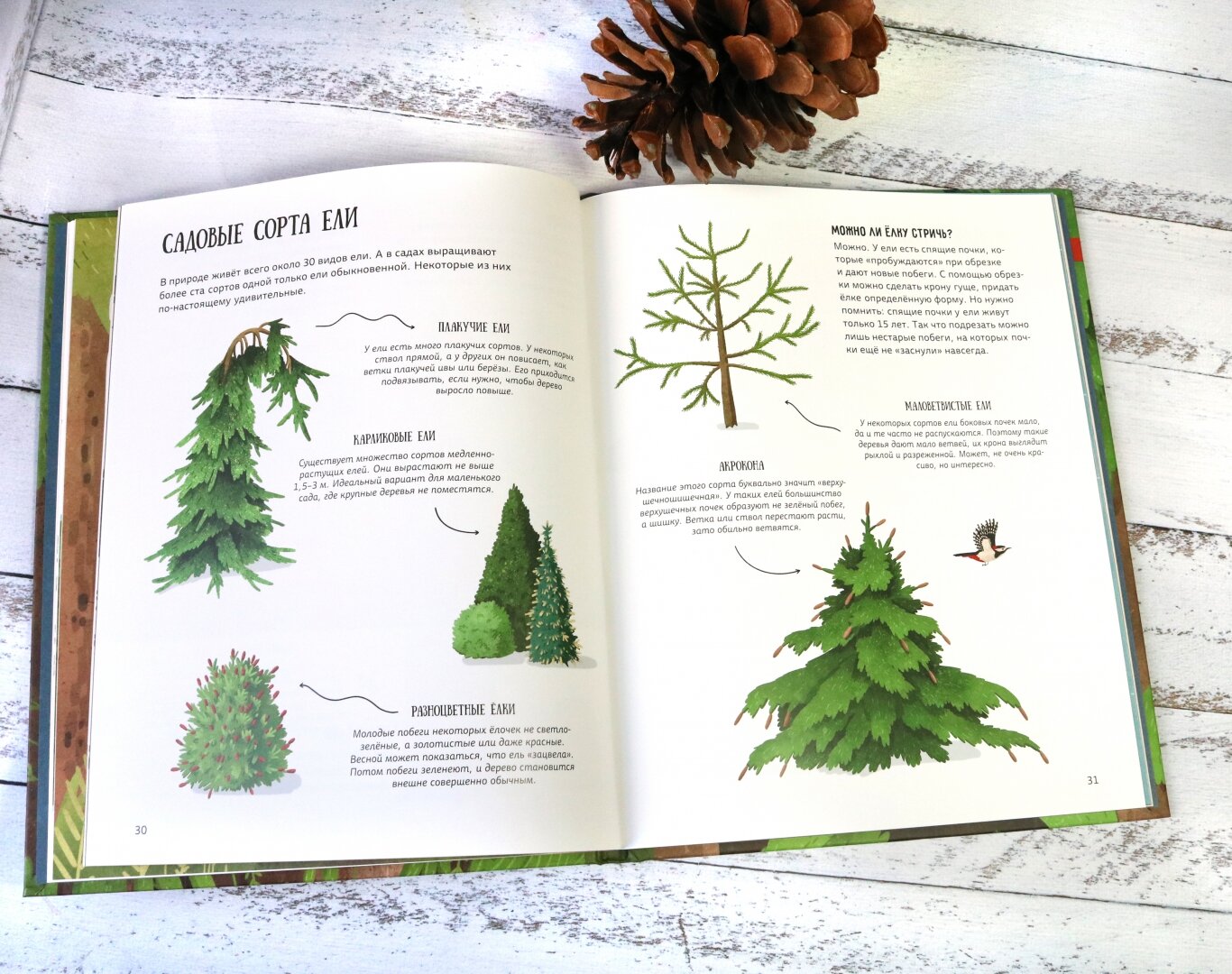 Покупала книгу в подарок сыну, энциклопедия со множеством картинок понравилась. Сказал, что даже несмотря на сложные названия растений, он понял, в чем их отличия и особенности. Попробуем посадить собственную елку. Сын теперь знает, когда и где лучше сажать, чем удобрять и как поливать!