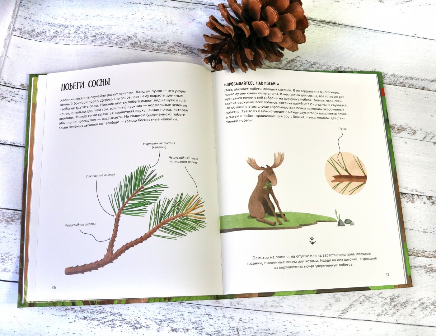 Спасибо за такую прекрасную книжку! Просто, понятно, но что самое главное, наглядно. После прочтения взяли книгу и пошли с ребёнком в парк, лично знакомиться с вечнозелеными. Научились отличать ель от пихты, определять сколько лет дереву. Дома попробовали провести эксперимент с шишкой, ребенок под впечатлением. В книжке так много действительно полезной, практически применимой информации, что мы с большим интересом перечитываем.