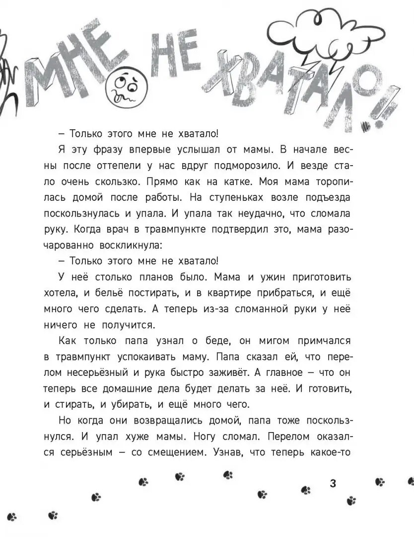 Эта книга - цикл весёлых и озорных рассказов о приключениях Миши Новикова, ученика начальных классов. Что ни день, то целая история о том, как мальчик и его друзья даже в самых непредсказуемых ситуациях сохраняют позитивный настрой и задор. Улей на день рождения от родителей, очередная двойка, ссора с одноклассником, не сделанное домашнее задание (а вы читали "Приключения Марка Твена"?) и неожиданные гости… Миша обязательно найдёт выход из любого положения! Но, как назло, не всегда всё идет по плану, и герою приходится то и дело вздыхать: "Только этого мне не хватало!"
