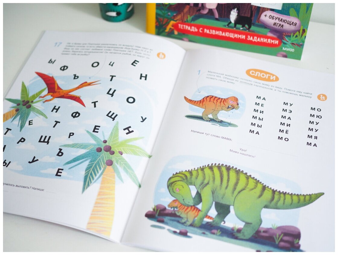 Развивающая тетрадь для знакомства с буквами и освоения азов письма и чтения. Юные любители динозавров будут в восторге!