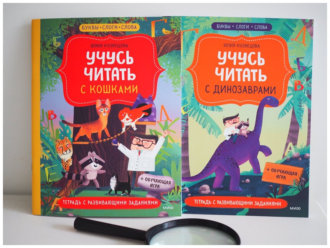 "Учусь читать с динозаврами"? построена по тому же принципу, что и "Учусь читать с кошками?".