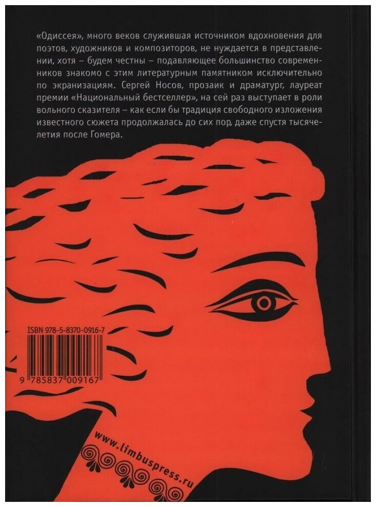 Перед вами оригинальное прозаическое переложение поэмы Гомера «Одиссея», выполненное Сергеем Носовым и рассчитанное на восприятие сегодняшним читателем. «Одиссея», много веков служившая источником вдохновения для поэтов, художников и композиторов, не нуждается в представлении, хотя – будем честны – подавляющее большинство современников знакомо с этим литературным памятником исключительно по экранизациям. Сергей Носов, прозаик и драматург, лауреат премии «Национальный бестселлер», на сей раз выступает в роли вольного сказителя – как если бы традиция свободного изложения известного сюжета продолжалась до сих пор, даже спустя тысячелетия после Гомера.