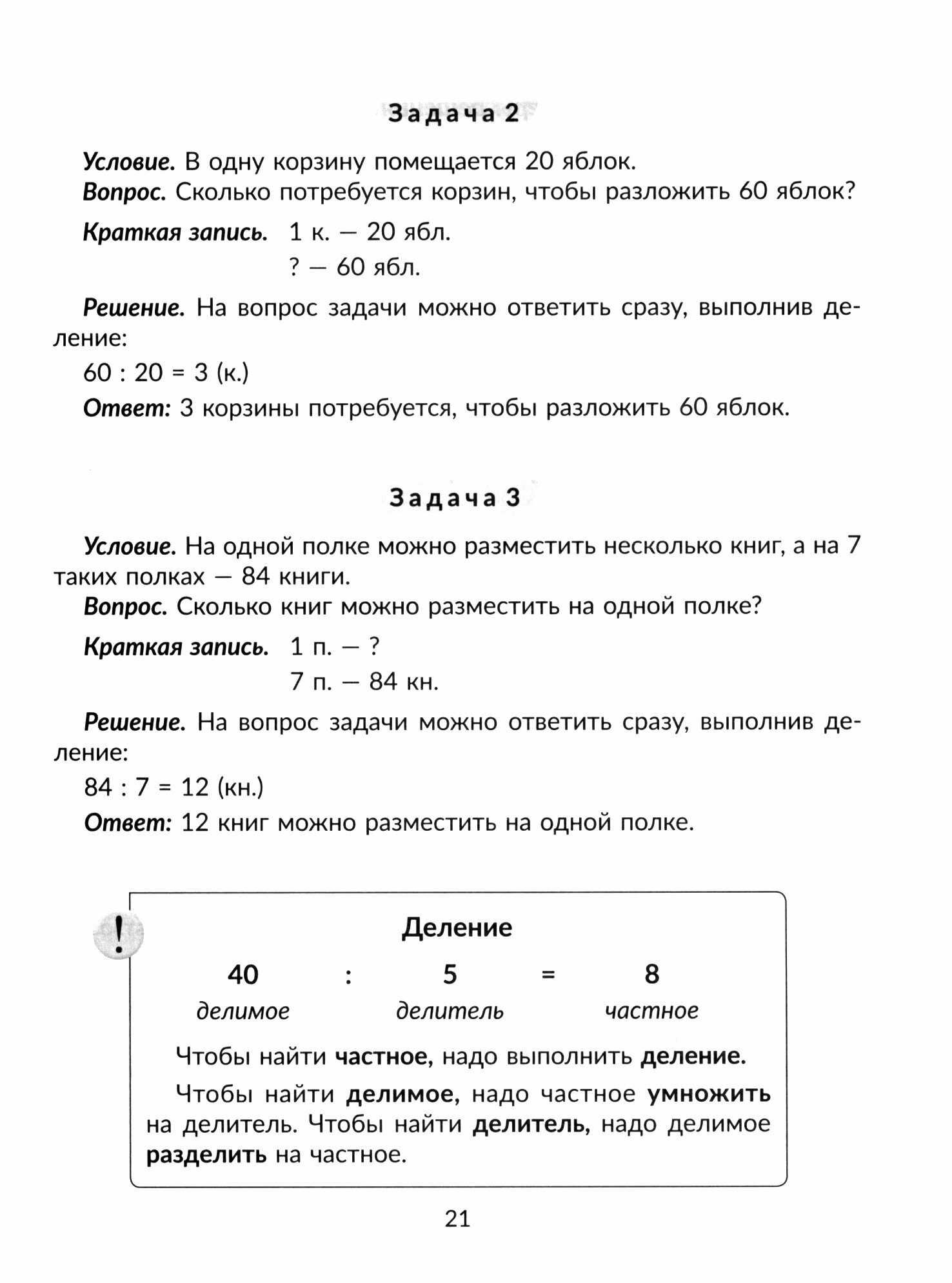 Книга адресована младшим школьникам, которые учатся решать задачи. В ней разбираются все типы простых и составных задач, которые предусматриваются школьной программой. Предлагается решения задач разными способами: по действиям, с пояснениями, с опорой на схемы и чертежи. Школьник учится составлять краткую запись, решать задачи с подсказками и самостоятельно и, конечно, с объяснениями решений. На все задачи даны ответы. Книга будет огромным подарком для родителей младших школьников - она сэкономит их время, подскажет, как справиться с трудностями, как объяснить задачу, поможет проверить знания ребёнка. Также полезна она и для педагогов начальной школы.