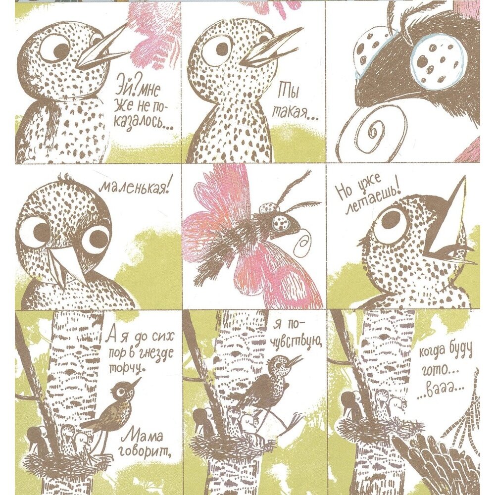 "Из гнезда" - просто прелесть!!! Очень красивая книга... Такая познавательная книжка с крутыми иллюстрациями и даже страничками с комиксами! Я поближе пофоткала, чтобы было видно рисовку, я в восторге. Волшебная какая-то совершенно книжка! А персонажи какие милые. Летучая мышка мой фаворит, посмотрите только на неё, ну что за милота... Вообще стиль написания природы мне немножечко напомнил Александра Головина моего любимого, сочетание цветов еще такое везде, очень нравится!