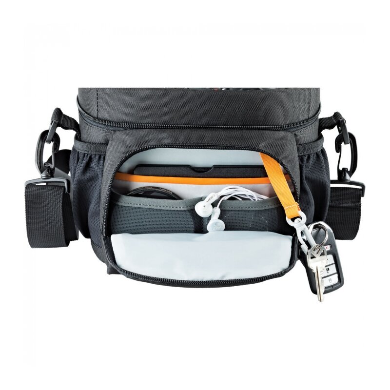 Продуманный дизайн сумок с передвижными перегородками позволяет эффективно моделировать внутреннее пространство, обеспечивая плотное прилегание камеры и объективов, тем самым надежно предохраняя технику от механических повреждений. Дополнительные кармашки для карт памяти и внешние карманы для других мелких вещей позволяют удобно размещать необходимые аксессуары. Быстрый доступ к камере осуществляется через верхнюю крышку. Эргономичный плечевой ремень, несоскальзывающий с плеча обеспечивает комфорт при транспортировке и при съемке. Сумки серии Lowepro Nova надежно защищены от неблагоприятных погодных условий: водоотталкивающий прочный на разрыв внешний материал и влагозащитные молнии предохраняют чувствительную фототехнику от пыли и влаги, а вшитый всепогодный чехол AW (All Weather Cover™) защитит оборудование даже под проливным дождем.
