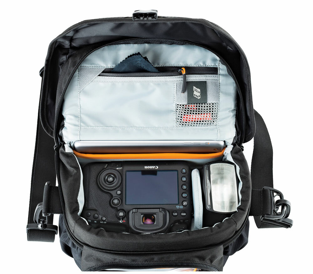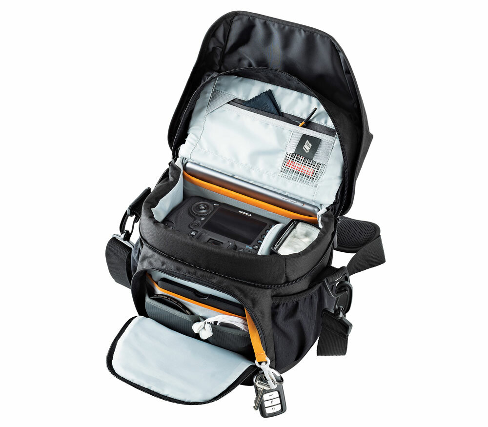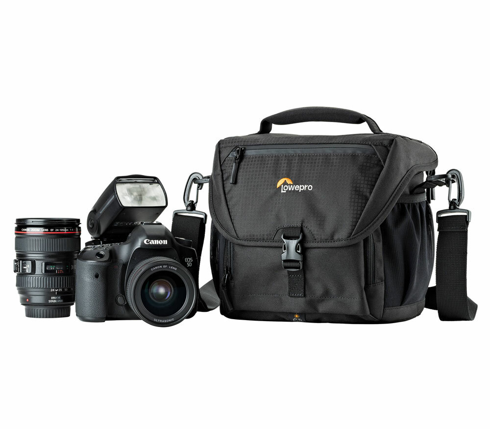 Продуманный дизайн сумок с передвижными перегородками позволяет эффективно моделировать внутреннее пространство, обеспечивая плотное прилегание камеры и объективов, тем самым надежно предохраняя технику от механических повреждений. Дополнительные кармашки для карт памяти и внешние карманы для других мелких вещей позволяют удобно размещать необходимые аксессуары. Быстрый доступ к камере осуществляется через верхнюю крышку. Эргономичный плечевой ремень, несоскальзывающий с плеча обеспечивает комфорт при транспортировке и при съемке. Сумки серии Lowepro Nova надежно защищены от неблагоприятных погодных условий: водоотталкивающий прочный на разрыв внешний материал и влагозащитные молнии предохраняют чувствительную фототехнику от пыли и влаги, а вшитый всепогодный чехол AW (All Weather Cover™) защитит оборудование даже под проливным дождем.
