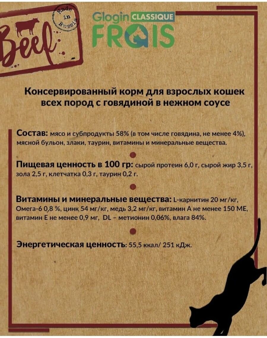 Влажный корм для кошек Frais Classique с говядиной в нежном соусе 0085 кг