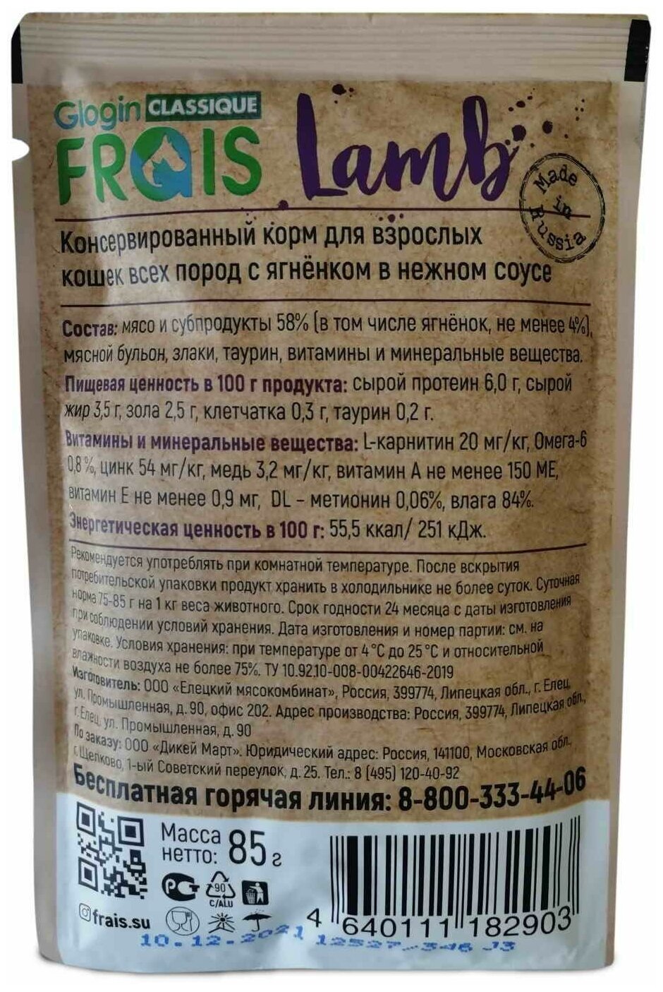 Влажный корм для кошек Frais Classique с ягненком в нежном соусе 0085 кг