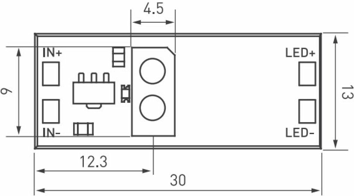Активный ИК-диммер, встраиваемый в профиль, реагирует на движение. При улавливании движения - плавное включение и выключение света. При длительном удержании руки над ИК-датчиком - плавное изменение яркости свечения. Зона срабатывания 60мм. Требуется вырез в экране профиля для работы датчика. Для профилей с внутренней высотой 10мм. 12-24V, 5A. Размер 30x13x8мм.