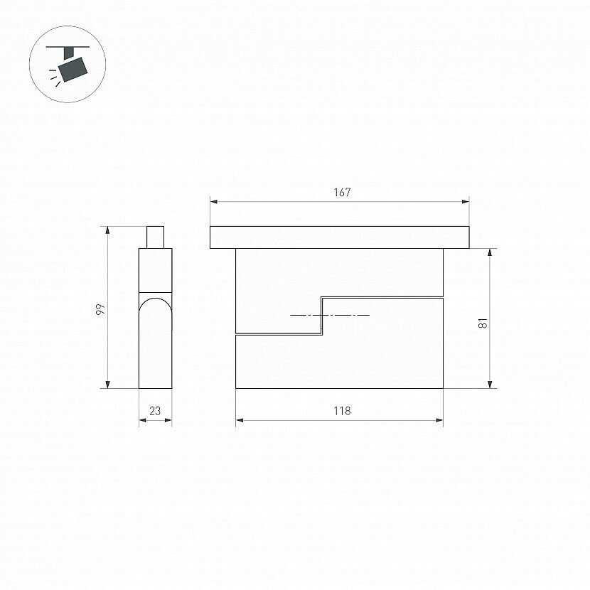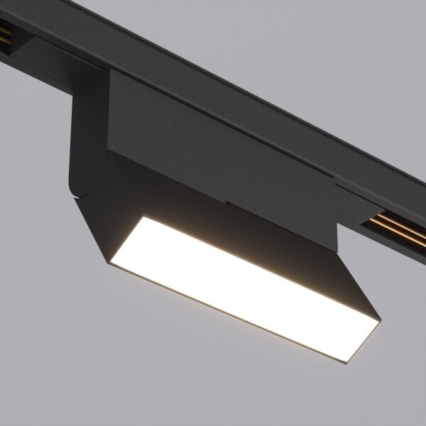 Светильник для магнитных треков MAG-ORIENT шириной 26мм. Мощность 6 Вт, св. поток 375 лм, 63 лм/Вт, дневной 4000 K, CRI>90, угол 80°, напряжение питания 48 В. Черный прямоугольный корпус из металл, экран поликарбонат, степень защиты IP20. Размер: длина 118 мм, ширина 23 мм, высота 99 мм. Монтаж на трек MAG-ORIENT, пульсация