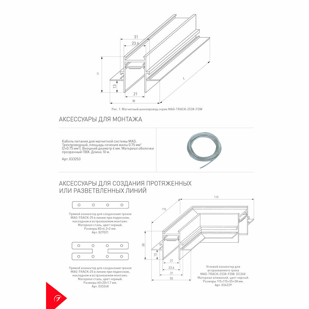 Шинопровод Arlight MAG-TRACK-2538-FDW black 036121 Mag-25