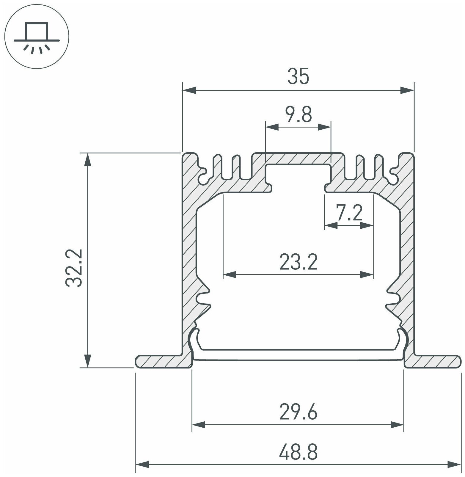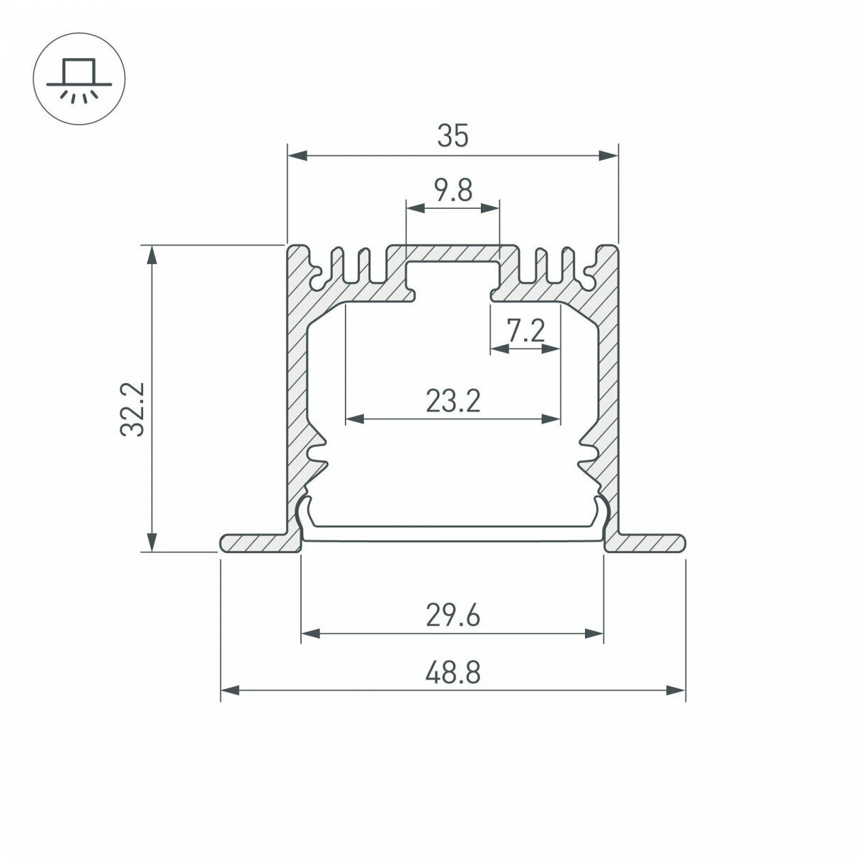 Встраиваемый профиль с накладным фланцем из анодированного алюминия для основной и контурной подсветки помещений. Габаритные размеры профиля составляют 3000 мм в длину, 49 мм в ширину и 32 мм в высоту, паз для установки 35 мм. Площадка для установки светодиодных лент позволяет использовать ленту шириной до 23 мм и мощностью до 39,4 Вт/м. Это обеспечивает гибкость в выборе светодиодных лент и создает потрясающие световые решения. Экраны, заглушки и другие аксессуары не включены в комплект и приобретаются отдельно. Отличное решение для создания современных световых проектов.