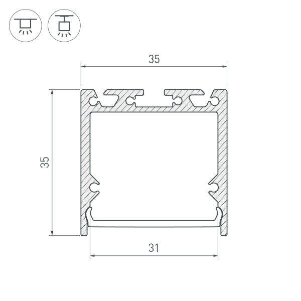 Подвесной/накладной профиль черного цвета из алюминия для основного освещения и контурной подсветки. Габаритные размеры профиля составляют 3000 мм в длину, 35 мм в ширину и 35 мм в высоту. Площадки для установки светодиодных лент позволяют использовать ленты шириной до 31 мм и мощностью до 36,7 Вт/м. Это обеспечивает гибкость в выборе светодиодных лент и создает потрясающие световые решения. Экраны, заглушки и другие аксессуары не включены в комплект и приобретаются отдельно. Отличное решение для создания современных световых проектов.