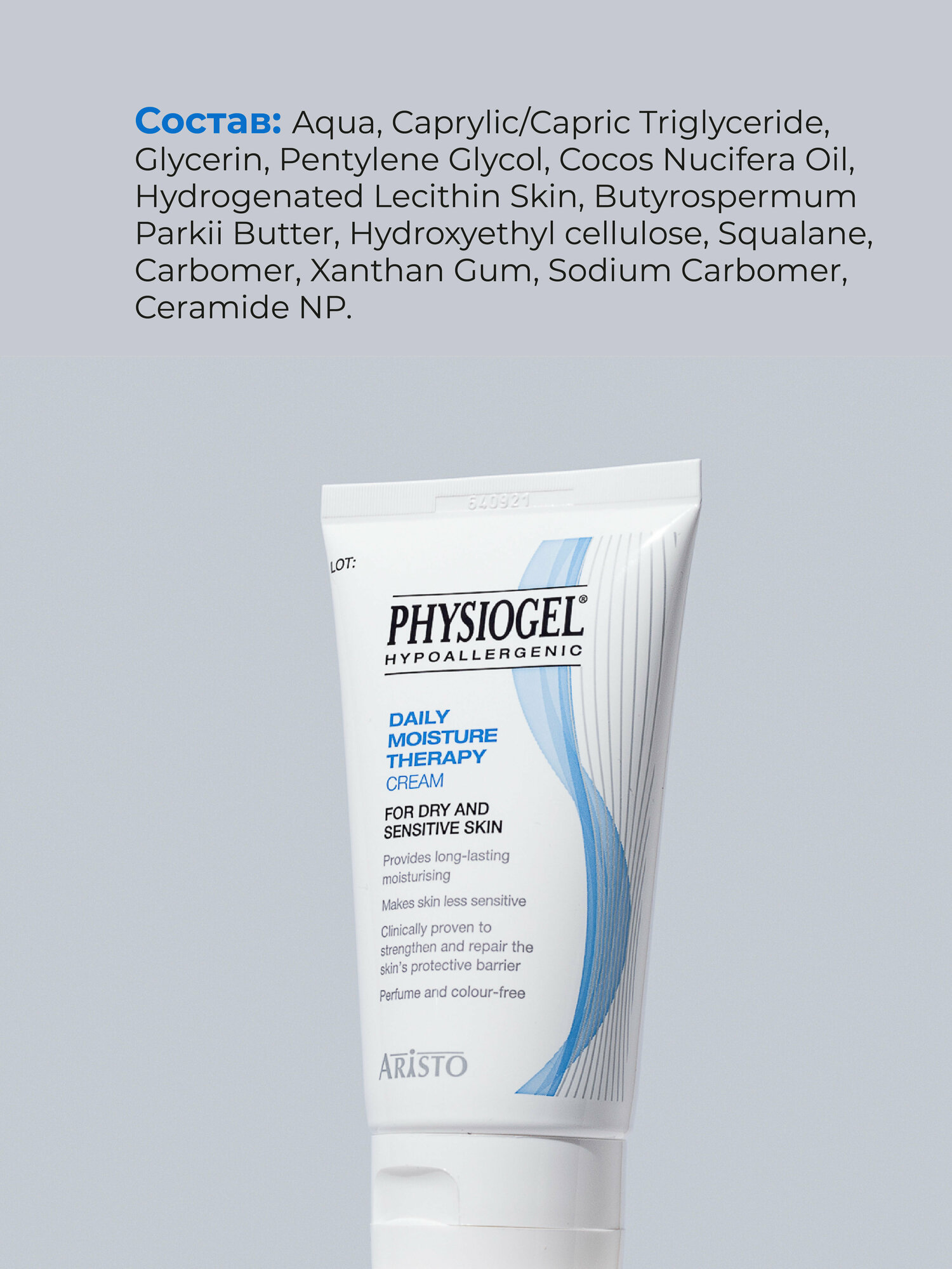 Увлажняющий крем Physiogel DMT для всех типов кожи лица и тела, включая сухую и чувствительную, для взрослых и детей 0+. Содержит 30% липидов в составе комплекса BioMimic, что обеспечивает длительное увлажнение и возвращает коже эластичность.