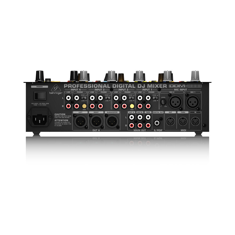 Behringer DDM 4000 – это профессиональный пятиканальный цифровой DJ-микшер, который является не просто инструментом для сведения треков в клубе, но и полноценным устройством для композиторской деятельности и аранжировки live-сетов. Создавать свои треки можно как при помощи встроенного сэмплера с питч-контроллером в реальном времени, так и с использованием MIDI-контроллеров, которые подключаются с помощю MIDI-разъемов на тыльной стороне микшера к DJ-платформам.