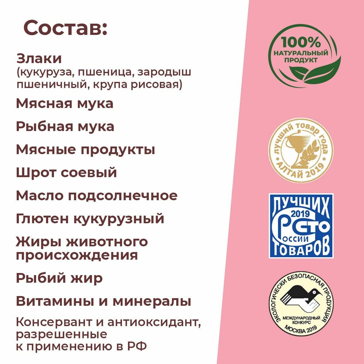 - Состав сбалансированного корма включает только высококачественные натуральные ингредиенты, способствующие укреплению иммунной системы и поддержания здоровья.