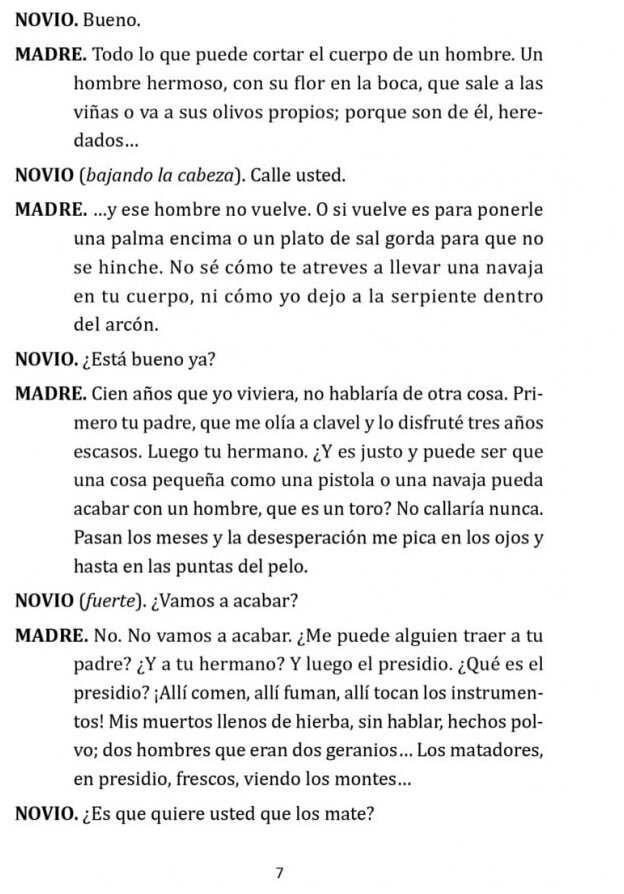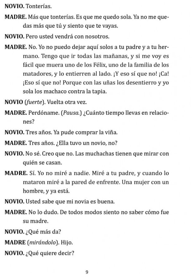 Федерико Гарсиа Лорка — великий испанский поэт и драматург, реформатор испанского театра. Пьесы «Кровавая свадьба», «Йерма» и «Дом Бернарды Альбы» — драматическая трилогия об испанской земле, «о жгучем противоборстве страстей» и о крушении надежд женщин, главных героинь всех трех произведений. Андалусия — край не только тенистых садов, виноградников, оливковых рощ, но и область бесплодных степей и скалистых пустынь. Мотив женитьбы в трагедиях увязывается с мотивами земли, плодородия и социального равенства.