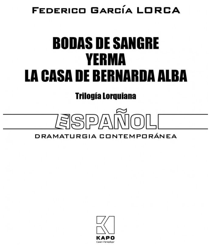 Кровавая свадьба. Йерма. Дом Бернарды Альбы. Трилогия. Книга для чтения на испанском языке (Федерико Гарсиа Лорка); КАРО, 2022