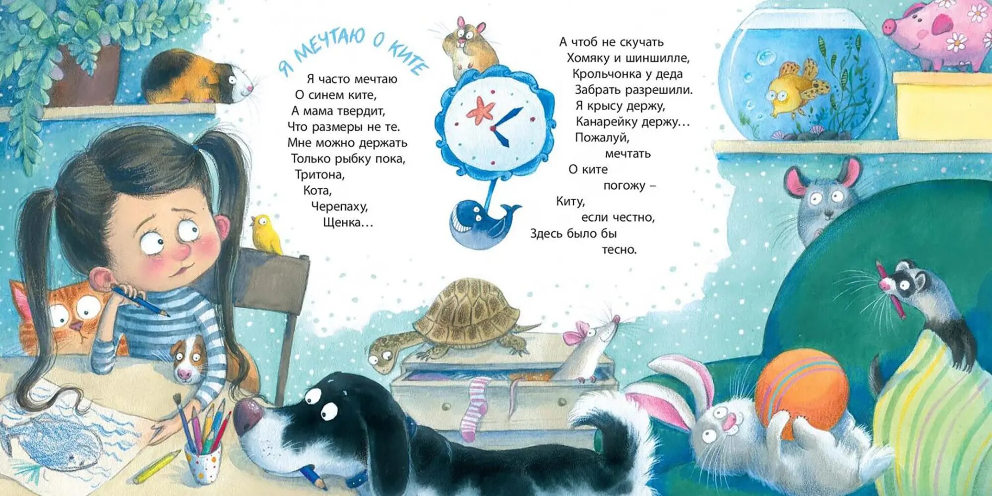 В этом светлом, теплом и приветливом доме нашлось место для множества зверюшек: тритона, кота, черепахи, щенка, хомячка, шиншиллы, крольчонка, крысы, канарейки… Только синий кит пока остается мечтой хозяйки: ему здесь было бы тесновато… О чудесном доме рассказывают веселые стихи Натальи Карповой и озорные рисунки Любови Ерёминой-Ношин. Приходите, вам тут тоже будут рады!