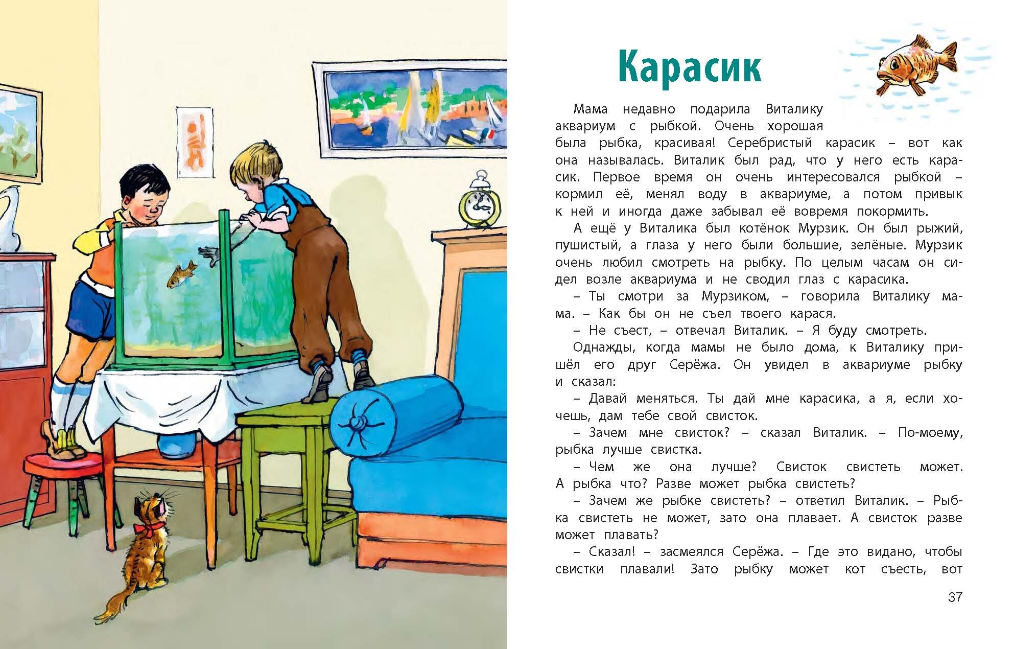 Это издание Затейников от ЭНАС-Книги мне понравилось версткой: на страницах есть воздух, отчего читать очень комфортно – крупный шрифт, хороший межстрочный интервал, поля, много иллюстраций. Сравниваю с нашей старенькой книгой Носова, где очень тесно было тексту.