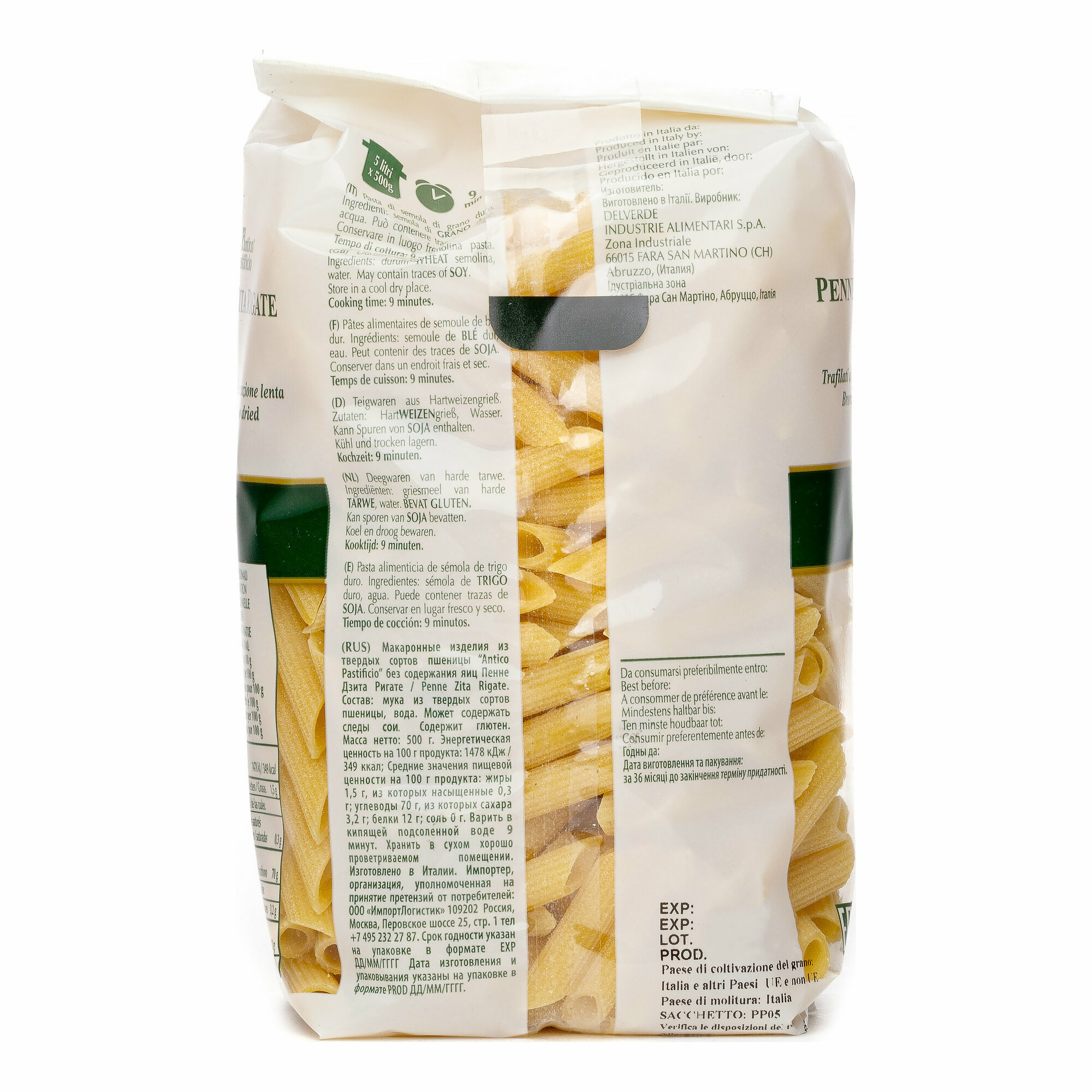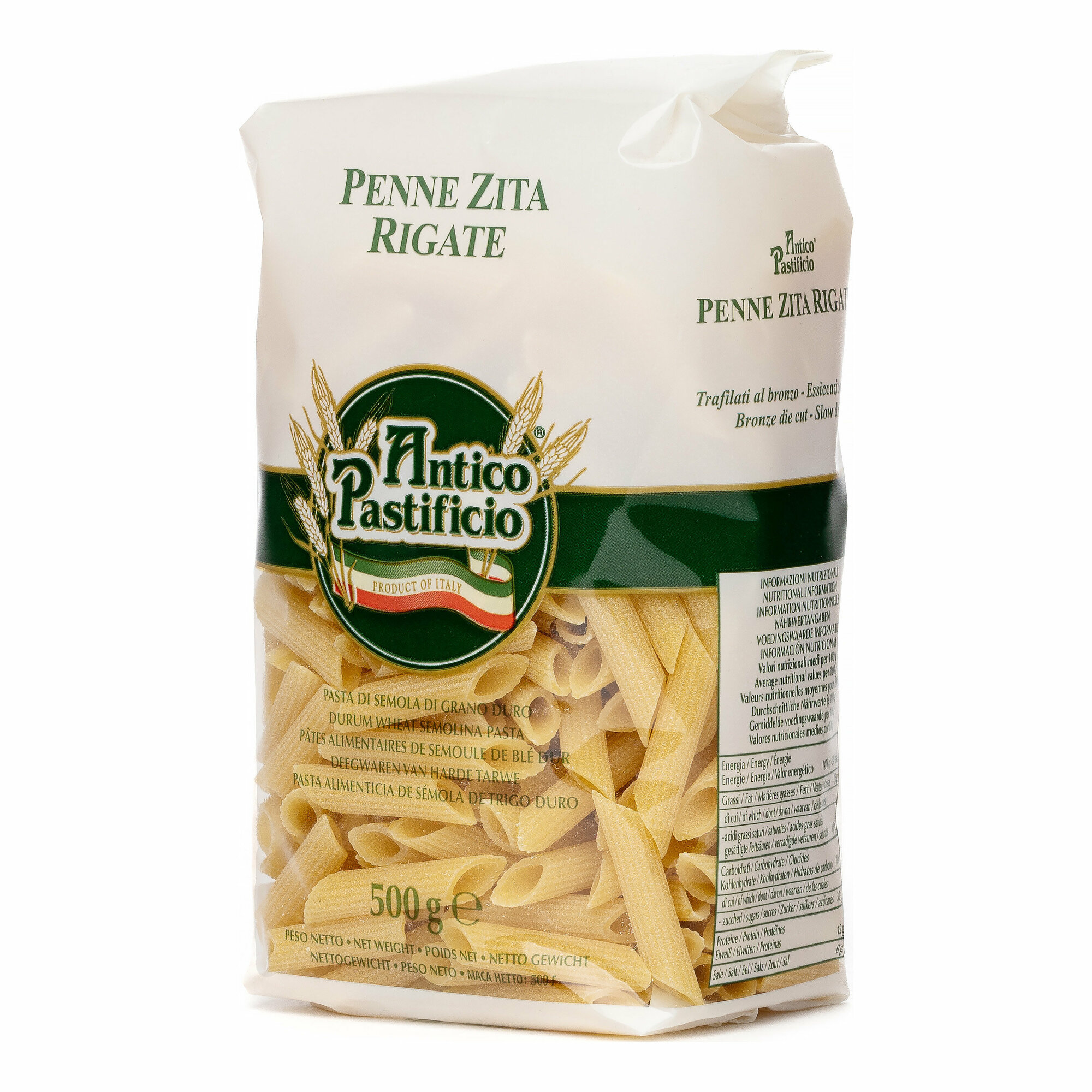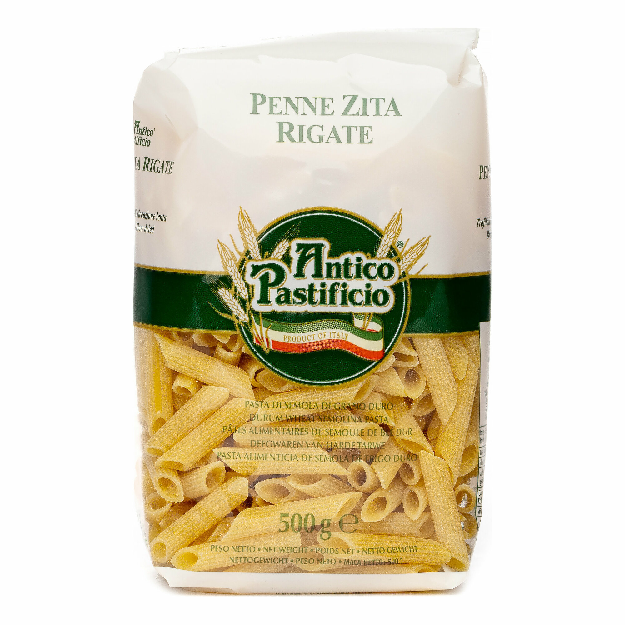 Макароны "Пенне Дзита Ригате" марки Antico Pastificio - оригинальный продукт из Италии. Изготовлены из отборных сортов твердой пшеницы без добавления яиц. Изделия отличаются превосходным вкусом и высоким содержанием белка. Подходят для приготовления пасты и различных сложных блюд. Макароны хорошо сочетаются с грибным, томатным и сливочным соусом.