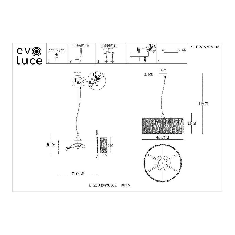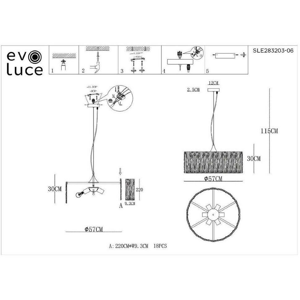 Люстра подвесная Rida SLE283203-06 - продукт известной компании Evoluce (Италия). Имеет максимальную мощность 240 Вт, освещает площадь до 12 кв. м. Отлично подойдет для таких мест, как гостиная, спальня, кабинет, кухня, над обеденным столом. Впишется в интерьеры следующих стилей: модерн.