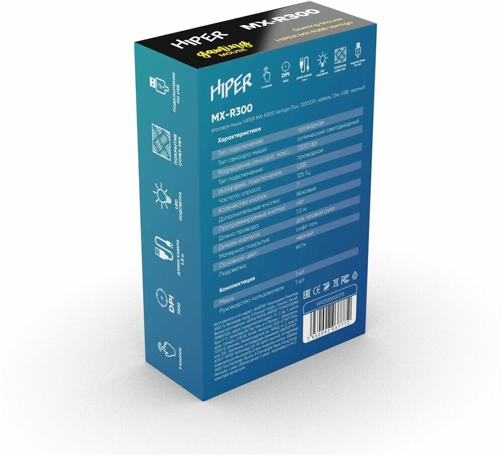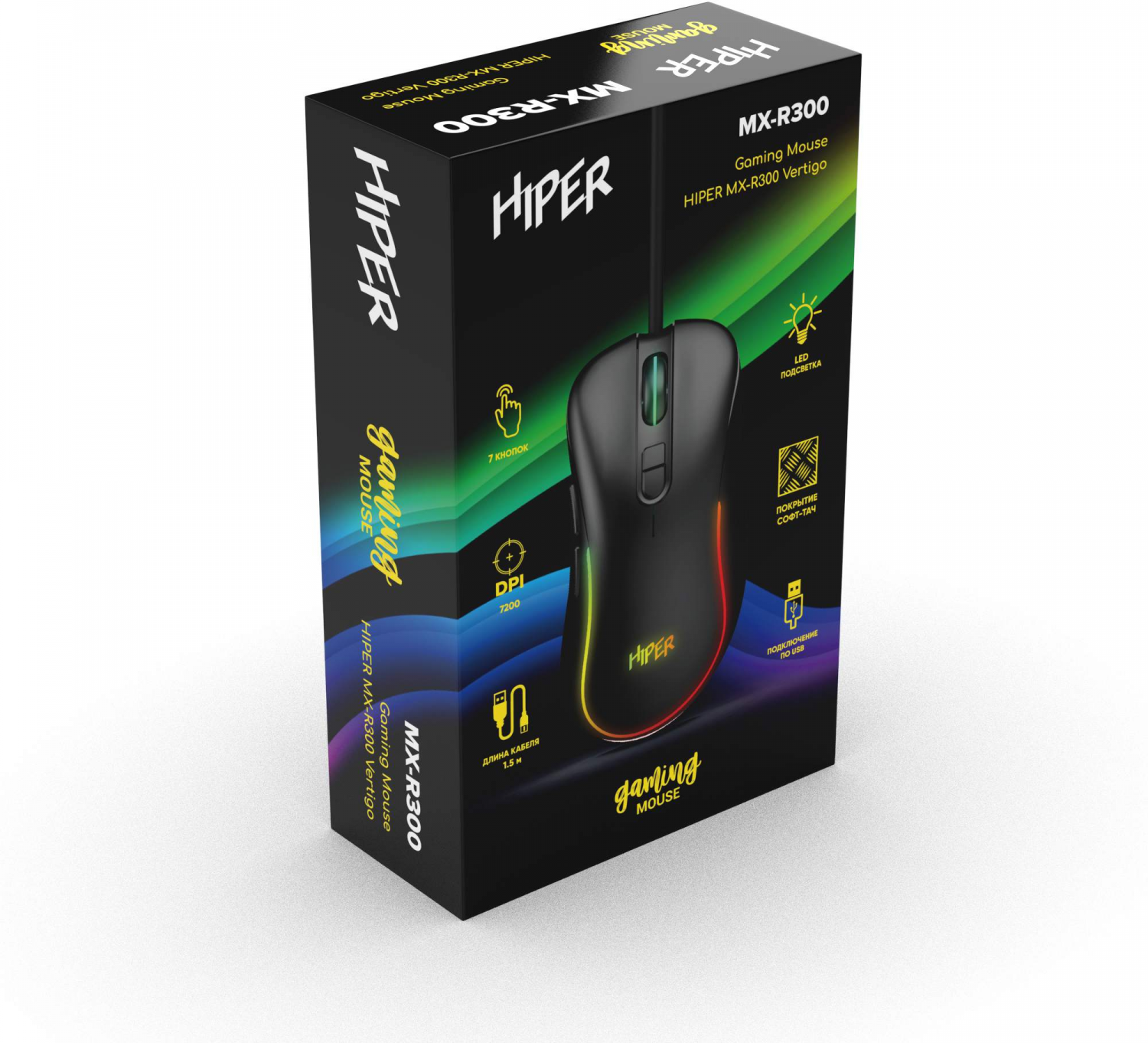 HIPER – оптическая мышь, которая идеально подходит для любителей компьютерных игр. Максимальное разрешение сенсора 7200 dpi обеспечивает высокую точность прицеливания и скорость реакции во время игры.