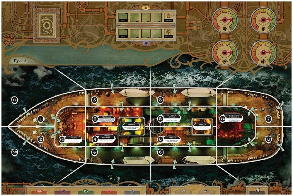 Страх сеет раздорСкрытые предатели очень стараются повредить процессу. Во-первых, они пытаются истощить важные ресурсы, коих в игре четыре. Во-вторых, в фазу мифа происходит кризис, и его решению они будут активно саботировать. Наконец, они могут оказаться в роли капитана (который направляет корабль) или хранителя фолианта (изгоняет монстров). Огромный простор для злоупотребления властью. Пассажиры победят, если доплывут до берега. Гибриды - если смогут истощить хотя бы один ресурс или потопить судно. Культисты на стороне глубоководных тварей, но у них есть еще собственная цель.