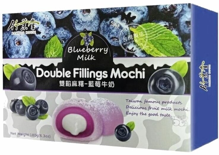 Японское рисовое пирожное моти DOUBLE FILLINGS MOCHI "Голубика с молоком" JMarket (JMarket85)