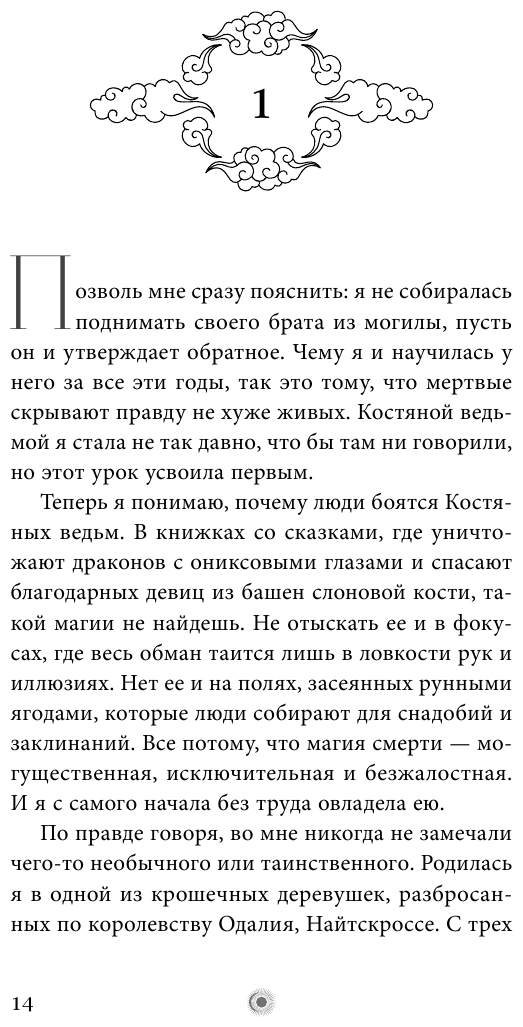В день, когда Тия случайно подняла своего брата из могилы, она узнала, что отличается от других ведьм. Дар некромантии сделал ее Костяной ведьмой, самой могущественной из всех, чьей магии подвластны руны Тьмы. Но чтобы ими управлять, Тия должна стать ашей и навсегда покинуть родной дом. Темная магия стоит целой жизни, а Тия - последняя Костяная ведьма. Сможет ли девушка не только пожертвовать своим будущим, но и укротить Тьму, пожирающую ее изнутри?