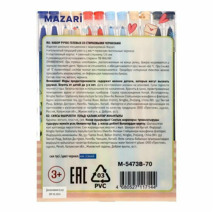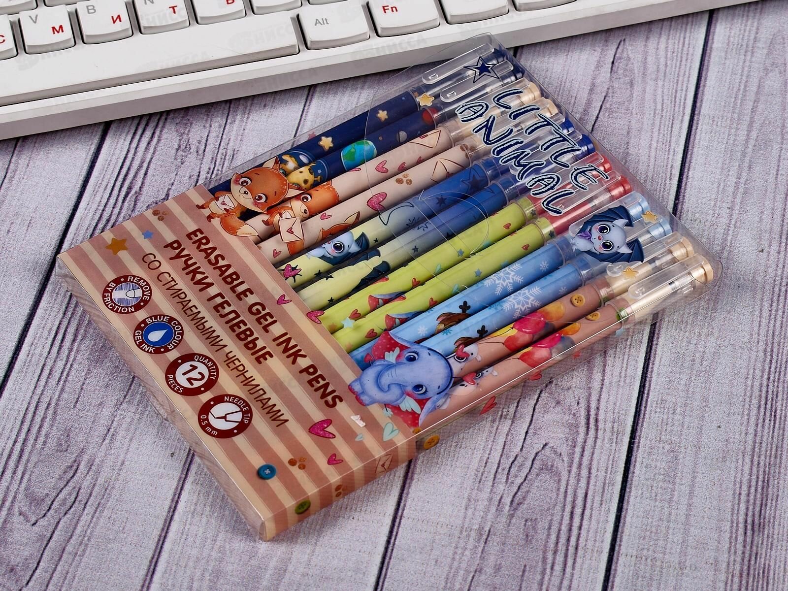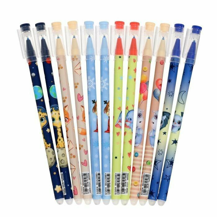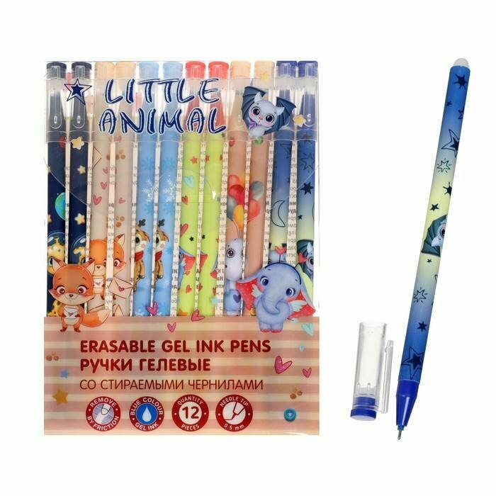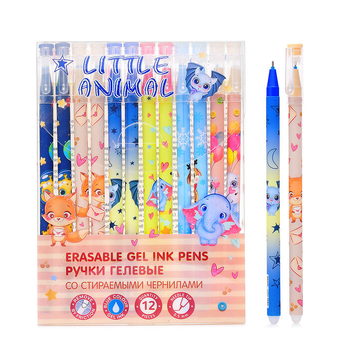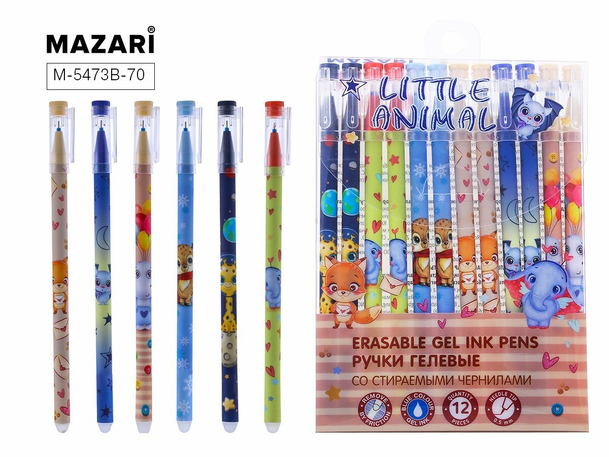 Набор ручек гелевых со стираемыми чернилами Little Animal 12 штук синие MAZARI