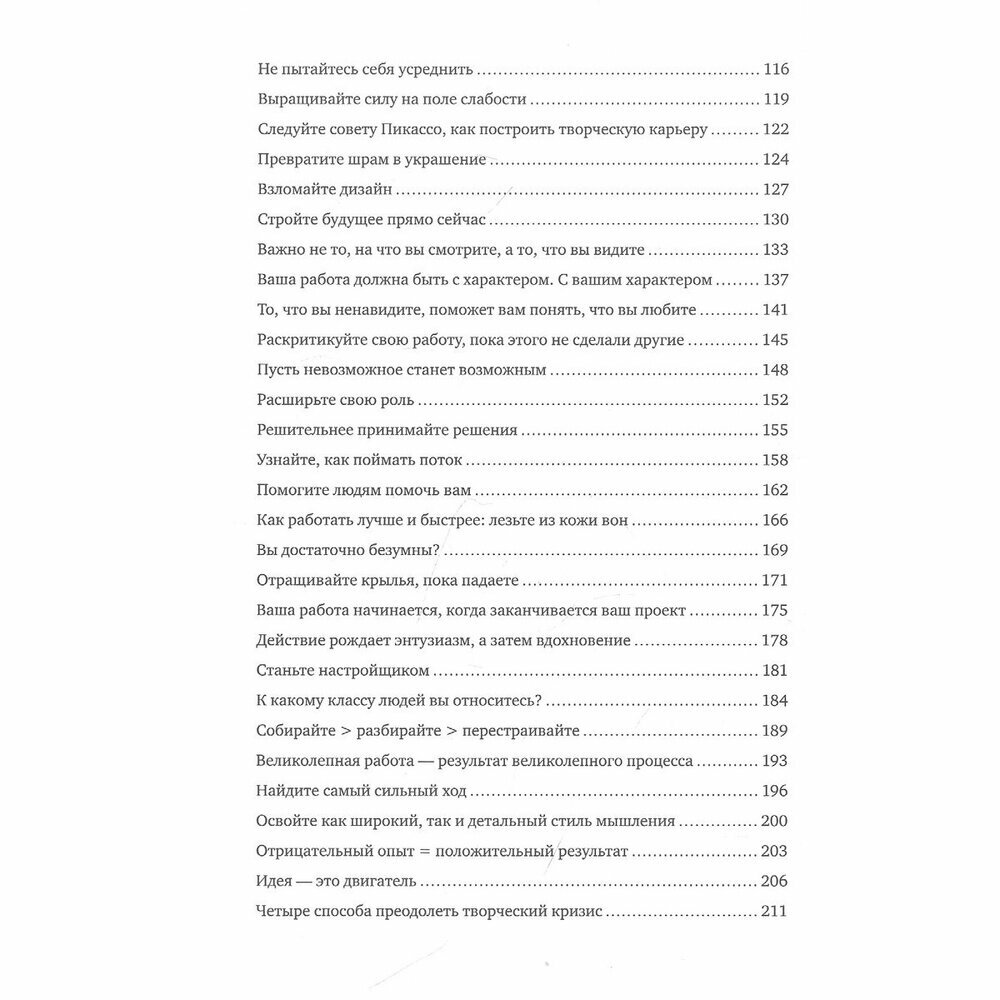"Вот уже двадцать лет я обучаю студентов Центрального колледжа искусства и дизайна Святого Мартина в Лондоне - одного из лучших профильных университетов в мире - техникам, описанным в этой книге, чтобы помочь им раскрыть свой потенциал. Во время лекций и семинаров для успешнейших компаний вроде Apple, Samsung и Porsche я также прибегаю к этим историям, чтобы вдохновить своих слушателей на использование креативного мышления. Теперь я хочу поделиться ими с вами".