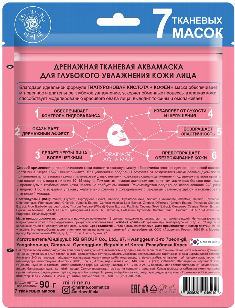 Набор масок для лица Mi-Ri-Ne Дренажные для глубокого увлажнения 7шт