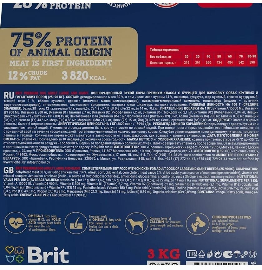 Модель: Корм сухой Brit Premium Dog Adult Large and Giant с курицей для взрослых собак крупных и гигантских