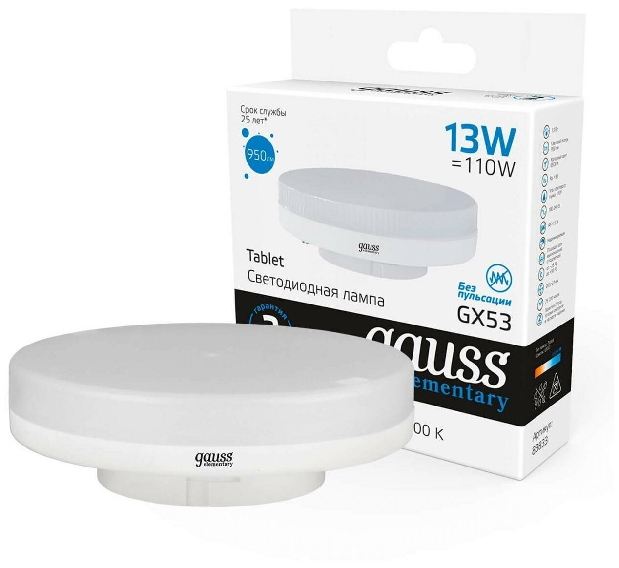 Светодиодная лампа Gauss ELEMENTARY 13W 950Lm 6500K GX53 83833 83833 Elementary